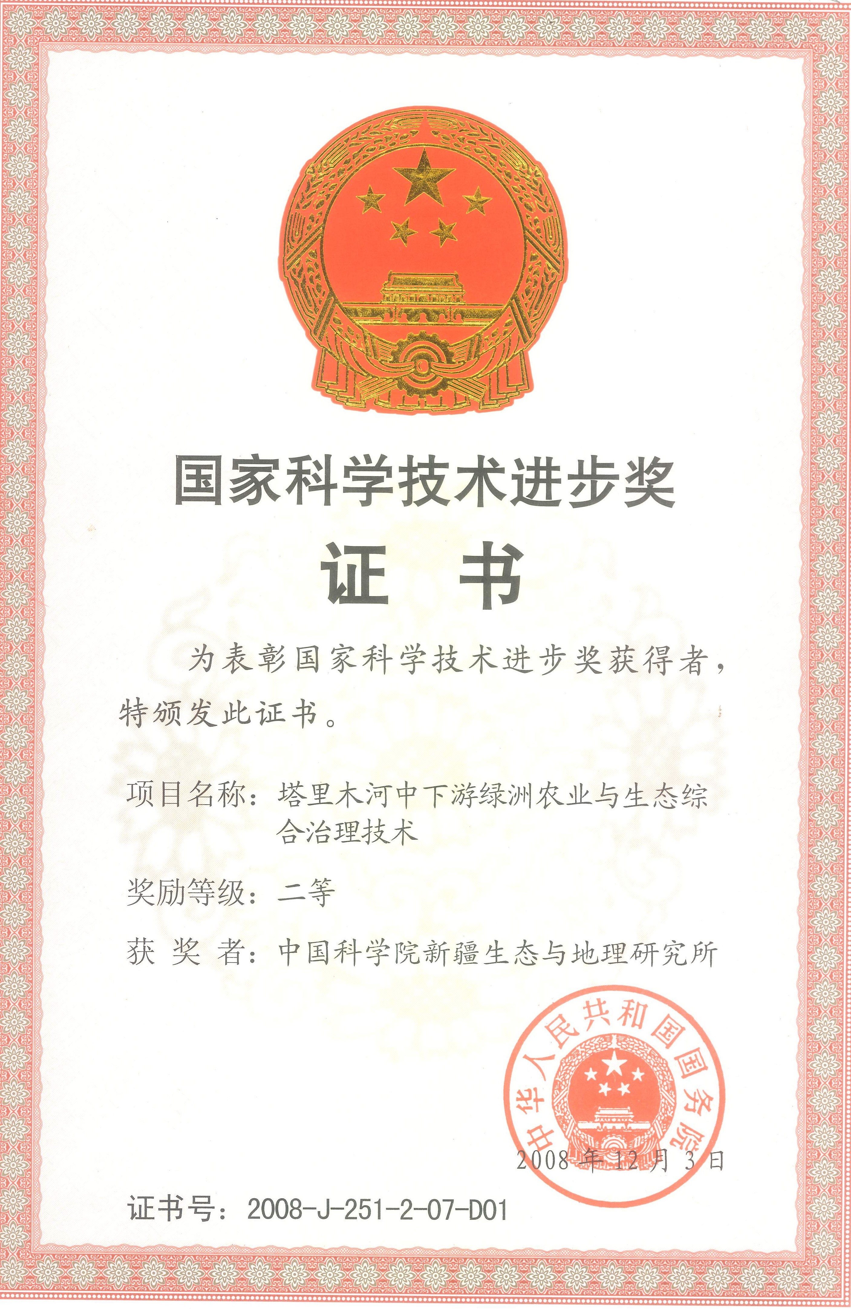 以塔河下游退化生态系统受损过程研究及恢复重建为重点,开展了节水高效复合型绿洲生态农业、退耕还林还草优化模式与途径、塔里木河下游生态保护恢复等方面的试验示范研究。建立了高效复合型绿洲生态农业示范区2.8万亩,建成生态经济型人工植被和养殖业试验示范点5个,退耕还林还草示范区1.5万亩,推广18万亩。建立了棉花高产种植、高效节水灌溉模式,提出了水、肥耦合管理技术指标,发展了棉花虫害生物防治、自动监测与预警技术,明确了微咸水利用的方向;筛选了适生牧草,引进了品牌羊的快繁快育和牛的胚胎移植技术,以“市场-公司-农户-基地”的形式,逐步构建“种草-养畜-畜产品深加工”的大型产业链。该项目被评为2008年度国家科技进步二等奖。
