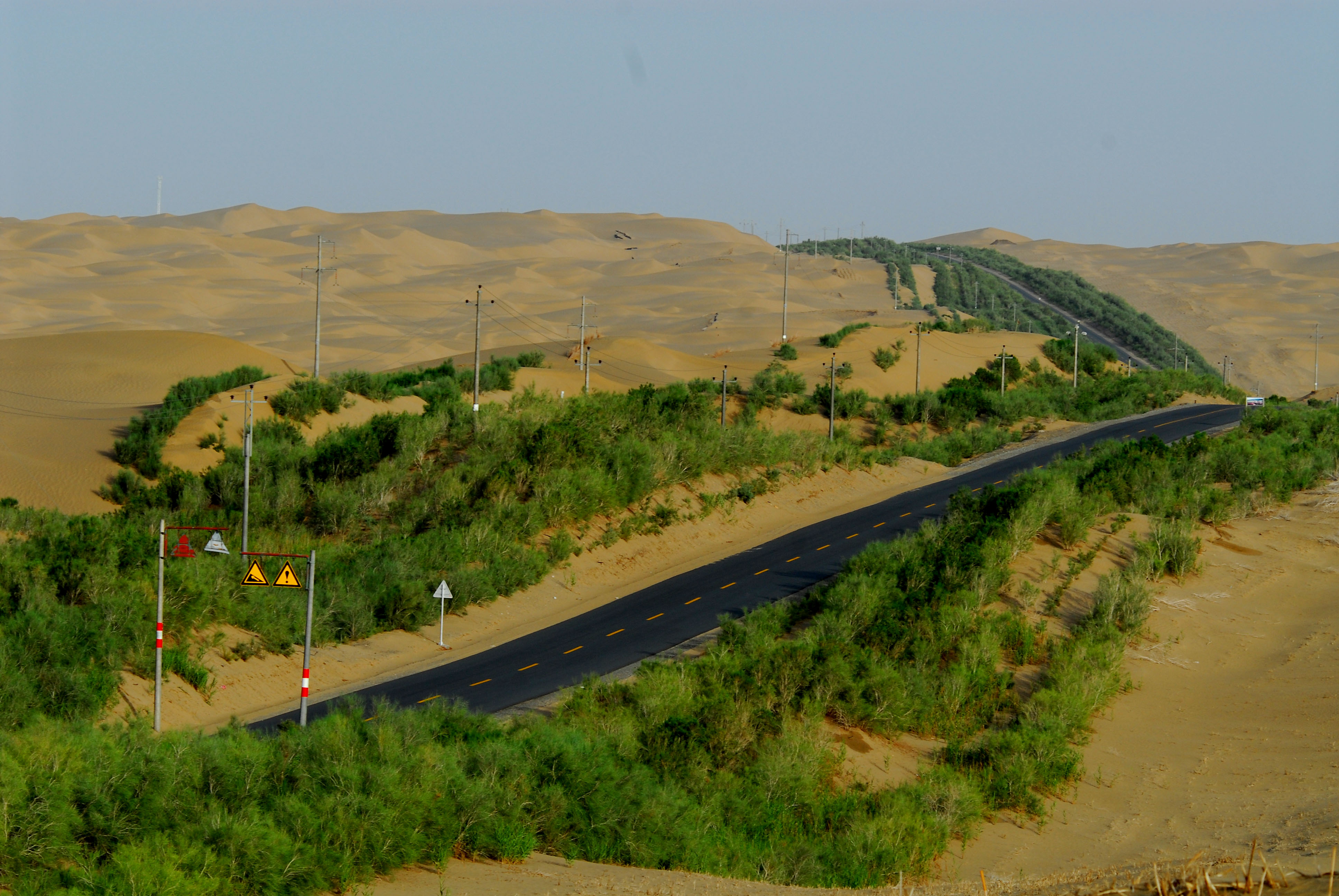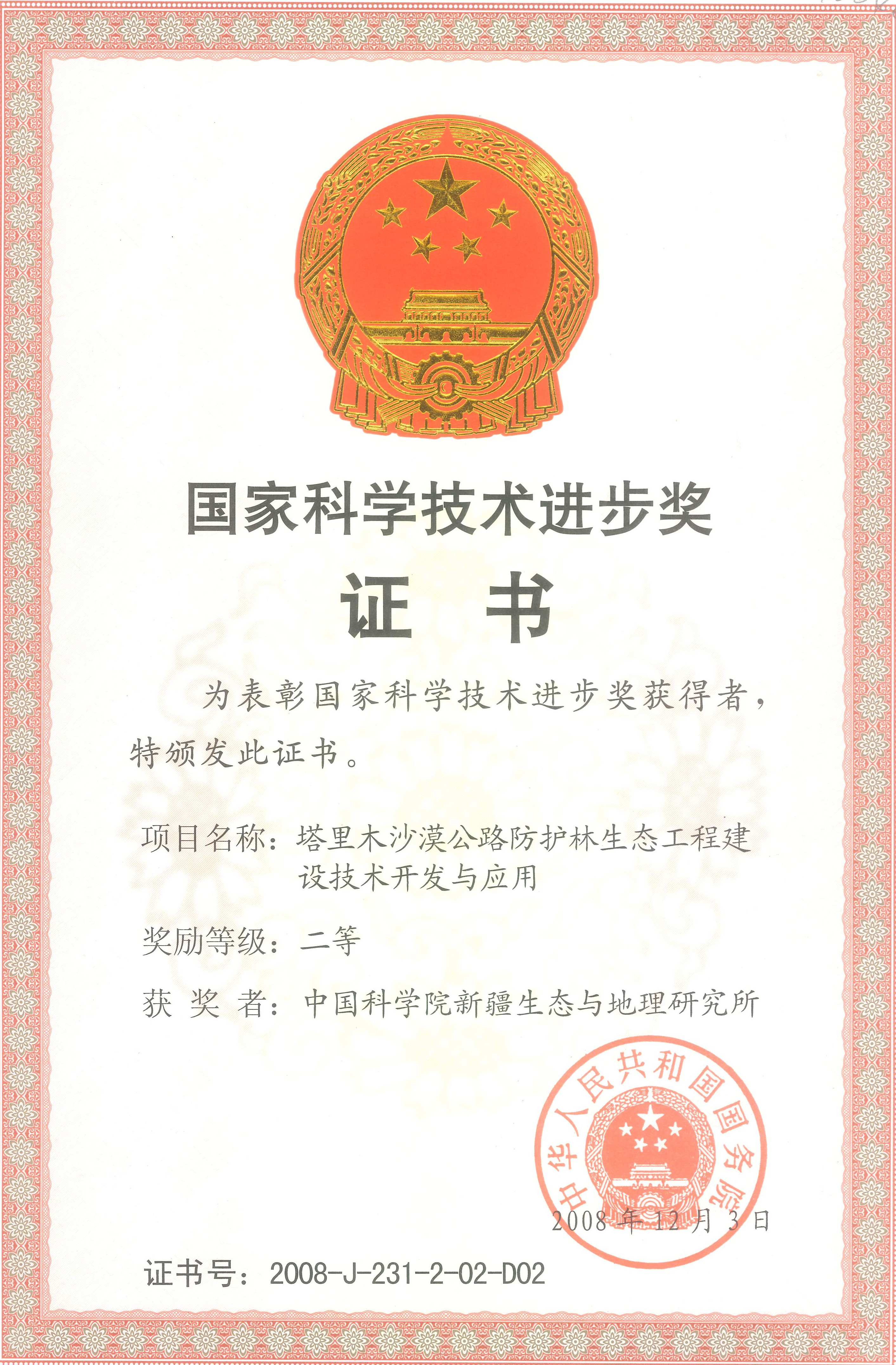 近百位科技人员,两千多名建设者历时16年与风沙抗争,解决了抗旱耐盐植物种选育、高矿化度水灌溉造林、防护林可持续管护等技术难题,为世界防沙治沙做出了重要贡献;基于流动沙漠地区防护林工程的肉苁蓉人工种植技术,为荒漠生态产业发展提供了新途径。该项技术成果的应用,使沙漠公路养护费用每年节省1680万元。防护林生态工程的建成,保障了沙漠公路的畅通,加快了塔里木盆地资源勘探开发速度,带来了巨大的经济社会效益,提升了我国在荒漠化防治领域的国际声誉。该项目被评为2008年度国家科技进步二等奖。