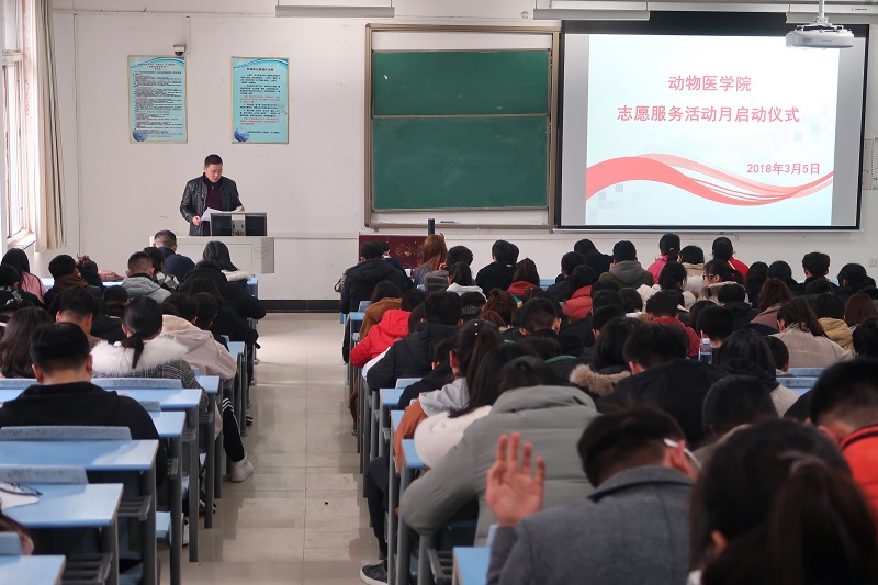 活动伊始,我院团总支书记王宏魁宣读了《动物医学院关于开展“志愿服务新时代 激扬青春献社会”志愿服务月活动的通知》,王老师鼓励广大志愿者要从我做起,积极主动干好分内工作,要让奉献热情洒遍校园。接着由志愿者代表王飞鸿同学代表全体志愿者发言,她向同学们介绍了雷锋精神在当代社会中的重要性,并向大家发出倡议:新的春天应该有新的起点,希望有更多的有志青年加入青年志愿者的行列。向雷锋同志学习,广泛参与志愿者服务活动,立足校园,感恩社会,让我们一起积极投身实践,以崭新的精神面貌投入到志愿者服务的时代浪潮中去,让大家了解当代大学生可贵的奉献精神,将文明传递下去!