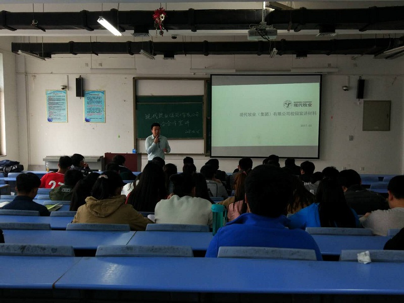 本次宣讲会吸引了动物医学院15级兽普一班、15动检班等班级的几十名学生参加。李经理首先为同学们播放了集团的视频简介,并且详细的介绍了集团公司所管辖的牧场在全国范围内的分布状况,其中主要有黑龙江,内蒙古,河北,安徽等。接着又介绍了公司的规模和内部设施、设备及工作人员的职业发展、生活条件以及福利待遇。之后,随后向同学们讲解了“现代牧业储备人才班”的培养目标,以及招收的人才所需要具备的技能和知识。最后进行现场互动,同学们详细咨询了关于进入现代牧业有限公司工作的要求等有关问题,李经理为同学们进行了一一解答。