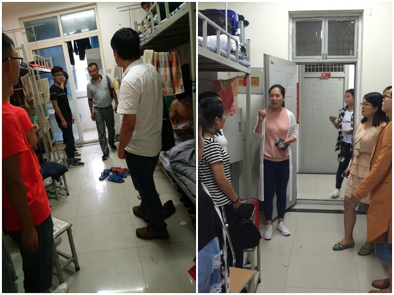 9日下午5点,新生报到工作基本接近尾声,我院党总支副书记张瑞春、团总支书记王宏魁、团总支各辅导员老师及17级新生班班主任和助理班主任等一行人分头深入到2017级男、女生宿舍走访慰问,并对500余名新生的到来表示热烈欢迎。每到一个宿舍,院领导与老师都详细询问同学们的家乡、入学后的感受和对学校环境的适应的情况,并围绕管理与后勤服务和宿舍文化细节等方面与新生们进行了亲切的交谈。同时提醒新同学不要轻信任何推销、兼职类等信息,要勇敢的对他们说“不”,遇到不确定的信息应当及时与助班和班主任联系。有的新同学表示,从老师的关心中感受到了慢慢的正能量,初入大学,雨中来回奔波的疲劳也在师生情谊浓浓的交流中烟消云散。