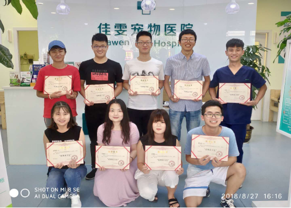 7月13日-8月31日,我院组织2016级“佳雯班”全体同学在校方班主任霍军老师的带领下赴宁波佳雯宠物医院开展为期50天的暑期认知实习活动。
