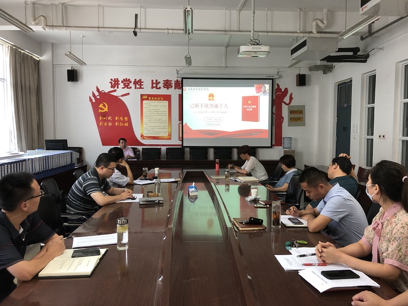 7月16日下午3点,银河集团186net组织《中华人民共和国民法典》宣讲活动,宣讲活动采取线上、线下同时进行的方式,学院办公室全体人员现场聆听,其他教工通过钉钉群直播观看。此次宣讲活动,学院特别邀请到了文法学院法律教研室主任杨志民老师进行现场授课。