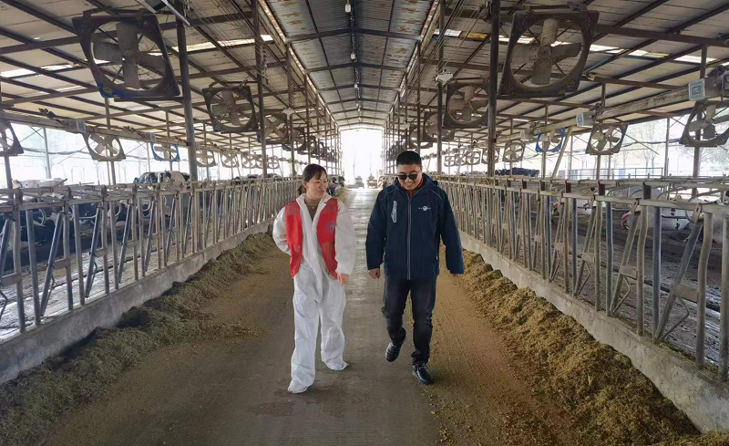 冬季气温下降,天气寒冷,牛只易发生冷应激,导致产奶量下降、冻伤等。如何做好冬季的饲养管理工作、减少寒冷天气对奶牛造成的影响也是一项重要的工作。罗琴认真听取了目前公司在养殖上的应对措施,给予了肯定,并建议其建立天气预警机制,做好奶牛场生产调节、物资采购及准备等工作,减少异常气候条件对奶牛场生产的影响。