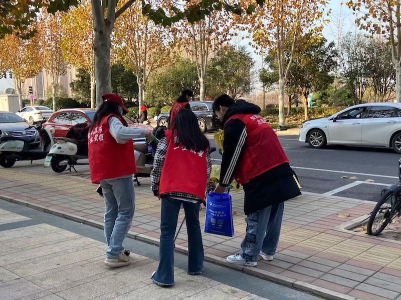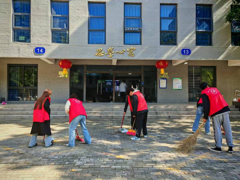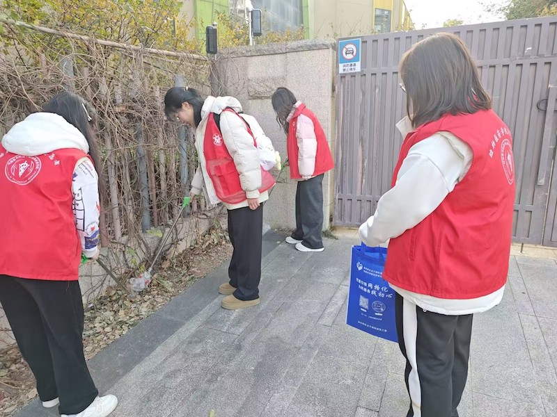 此次志愿服务主要以清扫落叶和捡拾垃圾为主,在校内和校外周边社区分头展开行动,旨在不同环境下受教育、长才干、作贡献。在校内清扫环节,学员手持扫帚、垃圾袋等清洁工具于我院13-14号楼前集合,以饱满的热情投入到校园清洁工作中。学员们不仅认真清理了地面的垃圾、落叶和杂草,同时还对楼前乱停乱放的自行车进行了规范的整理,让道路重现整洁与清爽。在欢声笑语中,大家齐心协力,用汗水诠释着对校园的热爱。