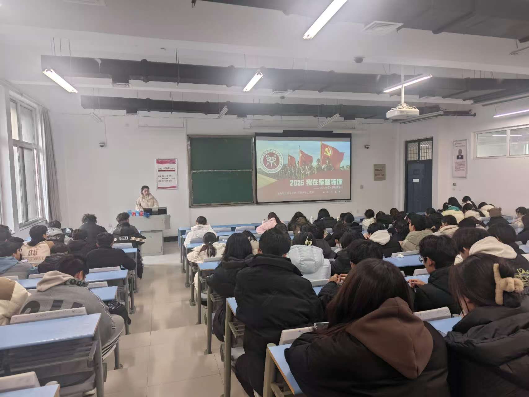 班会上,各班辅导员对2025年征兵流程进行了详细讲解,从入伍条件到军营生活,从优惠政策到退役保障,并对大学生参军入伍的政治荣誉、升学就业、经济补贴、部队发展、考公考编等几个方面进行重点解读,全方位展现了大学生参军入伍的广阔前景。相关政策解读后,辅导员向同学们分享了我院5名退役士兵考取985、211和“双一流”院校的先进事迹,鼓励同学们要积极投身国防建设,为国家的安全和发展贡献自己的力量。会后,各班积极推荐有意向应征入伍学生加入学院征兵咨询QQ群,由学院国防教育专业强化思想教育引导,做到精准有效动员。