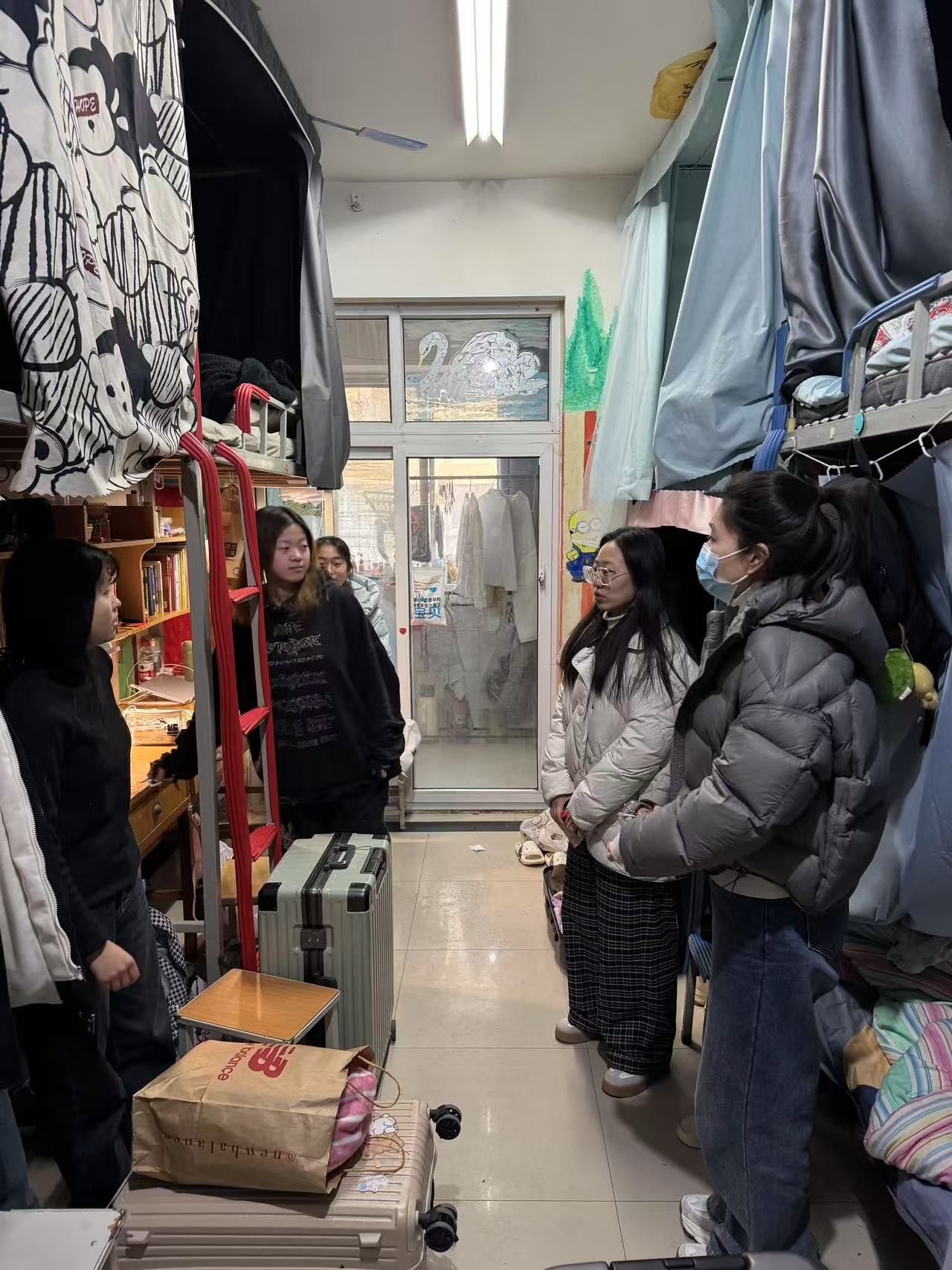 在走访过程中,辅导员们重点围绕寝室卫生、用电安全、物品摆放等方面展开全面检查,对存在安全隐患的插线板摆放、大功率电器使用等问题进行现场提醒和整改指导,并叮嘱同学们严格遵守宿舍管理规定,严禁在宿舍抽烟喝酒,倡导舍友间相互关照、友好相处,共同维护良好的生活环境。同时,辅导员们还亲切询问了同学们的假期生活和返校适应情况,耐心倾听同学们的新学期规划,鼓励大家尽快调整状态投入到新学期的学习。
