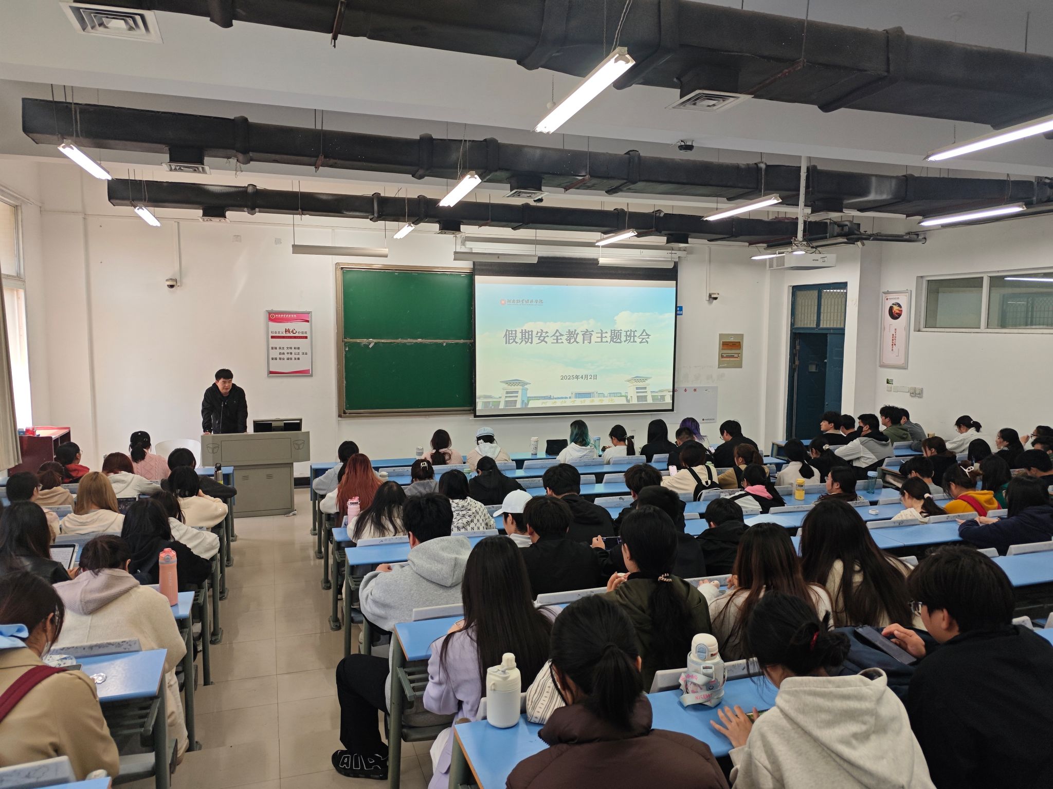 为切实做好清明节期间学生安全教育工作,增强学生安全防范意识,保障假期校园安全稳定,2025年4月1日至3日,银河集团186net全体辅导员分别组织召开"清明假期安全教育"主题班会,围绕消防安全、宿舍管理、出行安全等重点领域开展专题教育,实现全院学生安全教育全覆盖。