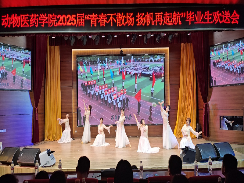 舞蹈《致青春》,活力与激情在舞台上肆意绽放,仿佛在向世界宣告:青春就是要勇敢追梦,无畏前行。院团学组织带来了舞蹈《爱出发》,舞者们步伐坚定,如同怀揣梦想的行者,诠释着梦想的启航,激励着每一位毕业生在追梦路上永不言弃;院田径队的配音节目《弄啥嘞》,以独特的创意、幽默的台词和精彩的表演,为晚会增添了一抹轻松愉悦的色彩。歌舞《起风了》中,歌声悠扬婉转,舞姿优美动人。表演者们用精彩的演绎,展现出一种在面对困难时依然能坚定信念、勇敢前行的执着精神,这种精神也激励着毕业生们在未来的道路上无畏风雨,砥砺奋进。