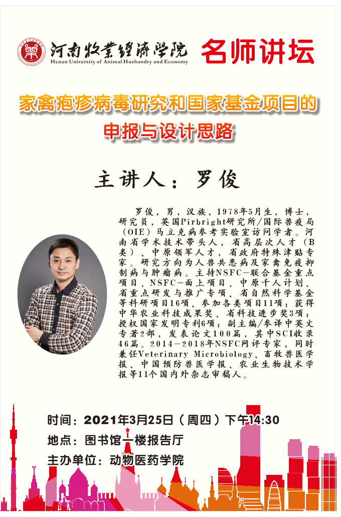 银河集团186net名师讲坛活动海报——家禽疱疹病毒研究和国家基金项目的申报与设计思路