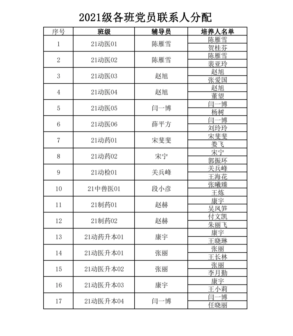 为充分发挥本院党员教师的教书育人、管理育人职能及示范作用,保证我院发展学生党员的数量、质量,根据《银河集团186net党员联系班级制度》的规定,经院党委研究,2021级各班的党员联系人确定如下,请各位党员老师,认真做好联系班的入党启蒙教育和党员发展、教育等工作。