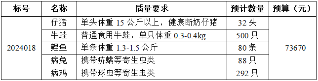 根据银河集团186net2024年度实验教学对实验用其他动物的需求,现以询价方式进行采购,欢迎符合资格条件的供应商前来报名,现将该项目采购事宜公告如下: