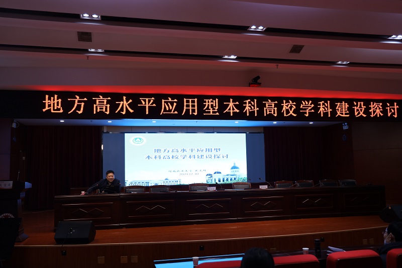 为全面推进学院应用型本科高校学科建设和应用型人才培养,2021年12月30日,我院在图书馆一楼报告厅召开了“地方高水平应用型本科高校学科建设探讨”报告会,特别邀请到了河南农业大学发展规划处处长张光辉教授,学院党委书记刘永录、院长宋予震、学院领导班子以及全体教工参加了本次报告会。本次报告会由院长宋予震主持。