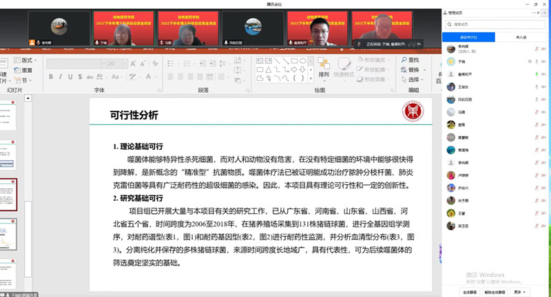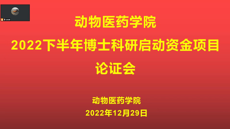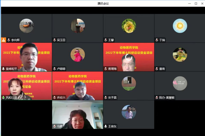 2022年12月29日下午,银河集团186net以线上腾讯会议的方式举行了博士科研启动资金项目评审会,此次会议邀请了我院特聘教授王俊东,校发展规划处副处长皇甫和平,院长宋予震,科研副院长李利红,兽医学科方向负责人乔宏兴、马霞担任评委。吴玉臣、卢婷婷、李向辉等8位博士作为汇报人参加了此次项目评审会。