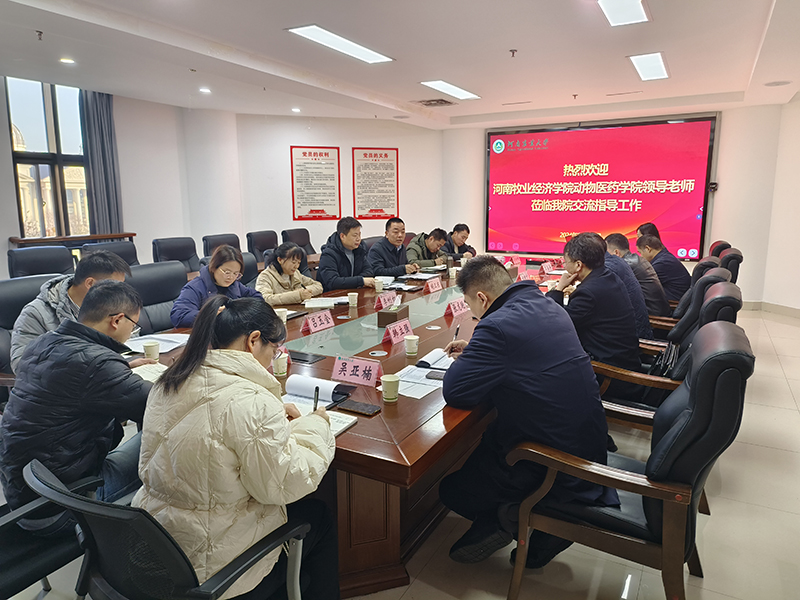 2024年12月18日,河南牧业经济学院银河集团186net党委书记胡卫东、副院长汤法银等人一行赴河南农业大学动物医学院开展交流学习。此次交流活动旨在推动双方在畜牧兽医教育领域的合作与发展,进一步促进优势互补、资源共享、共赢合作。