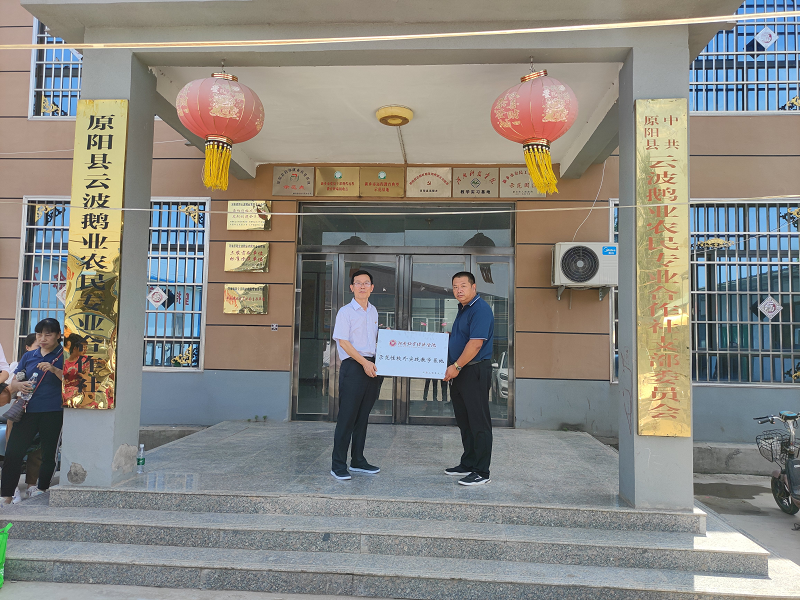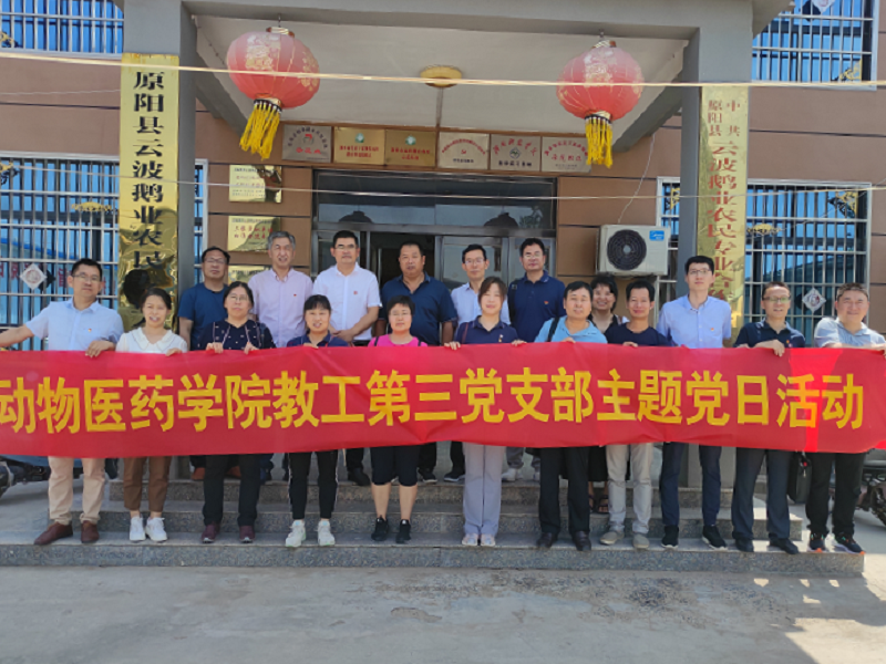交流会上,双方就合作社的孵化场地、鹅苗养殖种类、疾病的防控、经营模式及销售渠道等进行了详细探讨,与会老师对合作社提出的养殖中所面临的疾病风险,生物防控体系的欠缺等问题一一进行解答。教工第三党支部书记乔宏兴教授代表支部捐赠合作社价值900多元的专业图书30本。
