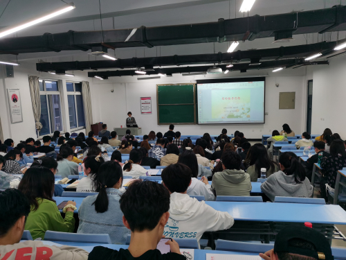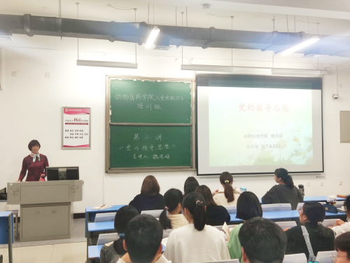 2021年4月19日晚,银河集团186net正处级组织员魏秀娟教授在一号楼在合301教室为学员们讲授《党的指导思想》党课。