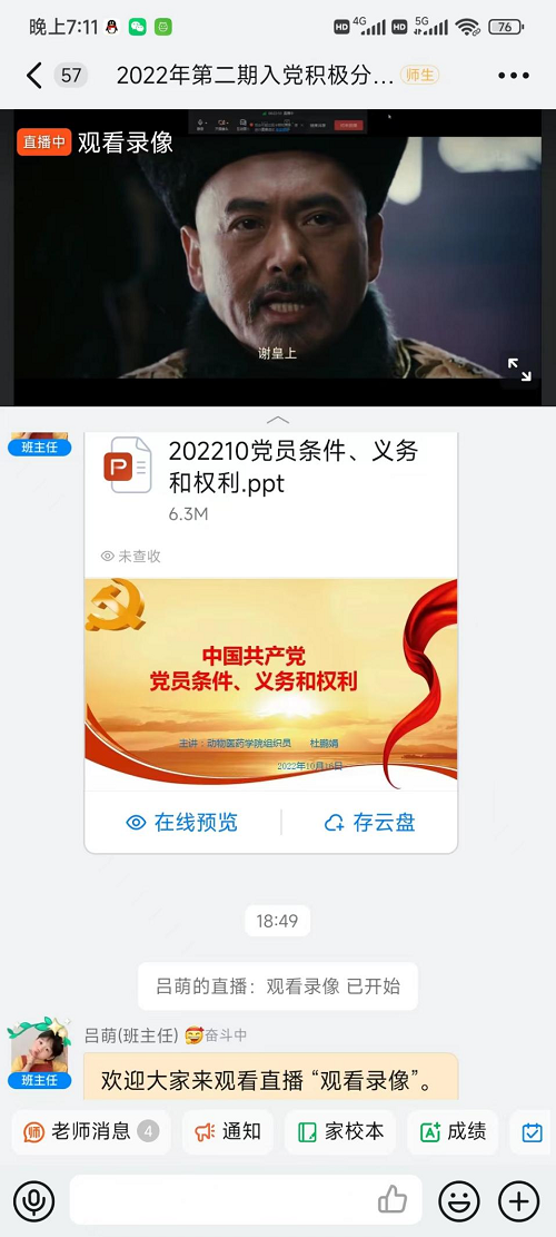 为提高入党积极分子的党性修养,加强入党积极分子对党组织的认识,了解中国共产党的建党历程,10月17日晚上,入党积极分子培训课程第九讲《观看录像》开课,在银河集团186net辅导员薛平方老师的指导下,本期238名入党积极分子学员通过钉钉直播进行线上观看电影“建党伟业”。