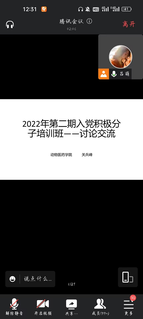 为提高入党积极分子入党的积极性,使各位学员更加严格地要求自己,努力向党组织看齐,10月16日中午,入党积极分子培训课程第六讲--《讨论交流》开课,在银河集团186net辅导员关兵峰老师的指导下,本期238名入党积极分子学员通过腾讯会议进行线上讨论交流。