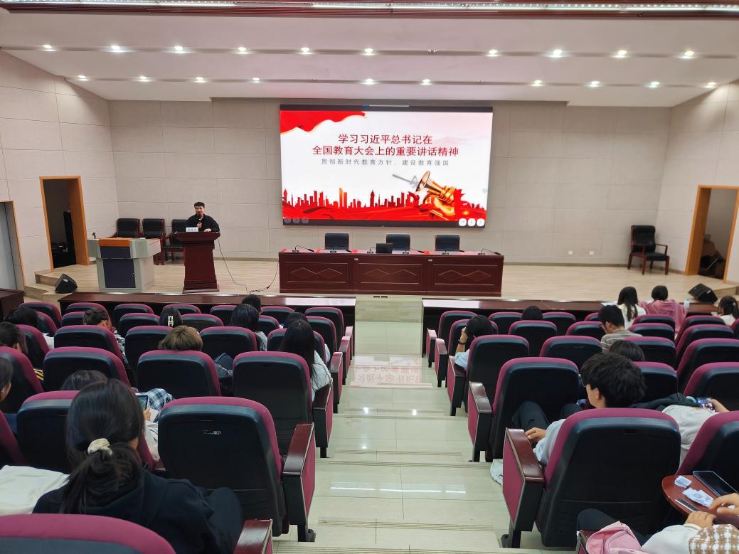 詹镇宇领学全国教育大会精神,重点讲解了“教育是强国建设、民族复兴之基”的概念,介绍了大会在教育发展目标与改革重点、实践路径、措施与展望等方面的重点,勉励我院学子要将德智体美劳全面发展内化于心、外化于行,努力在各个方面都取得优异的成绩,自觉肩负起时代赋予的使命和责任,为实现中华民族伟大复兴的中国梦贡献自己的青春力量。