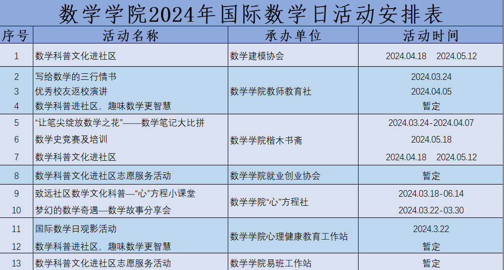继数学学院首次成功开展专业技能文化节、数学科普文化等系列活动之后,学院迎来了2024年国际数学日活动。