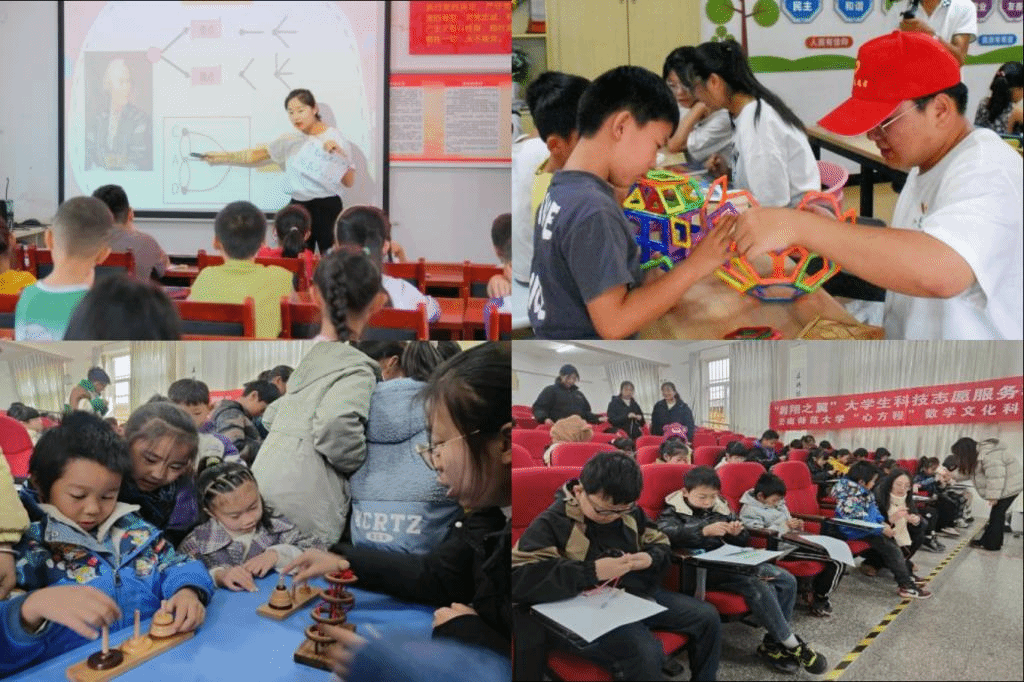 回顾已开展的系列活动,我院将数学知识和“减负不减质”的核心理念贯穿到丰富多彩的活动中,学生积极发挥数学专业特色和师范专业优势,寓教于乐、融学于趣、化教于心,让小朋友们真切感受到数学文化的历史沿革与深厚内涵,体悟数学魅力和探索数学精神,不断激发青少年对数学的兴趣。
