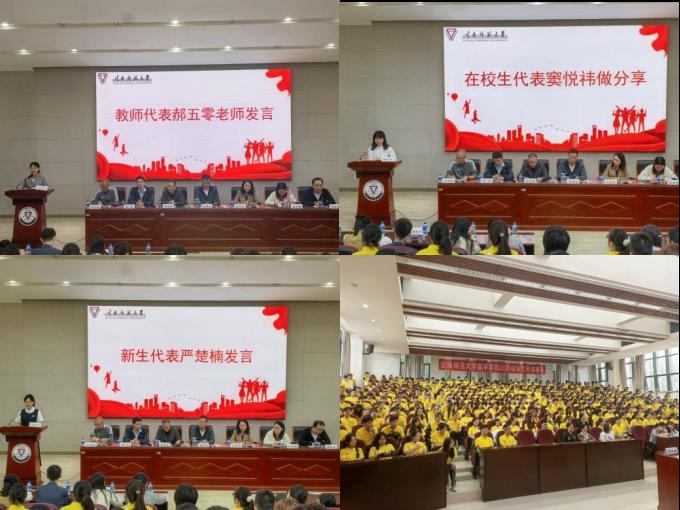 在校生代表窦悦祎以学姐身份,从学习规划、时间管理等方面分享经验,建议新生平衡学业与生活,在探索中发掘兴趣点。在校生代表夏丹则从“学、思、行”三个维度展开干货分享:“学”上要啃透教材、善用图书馆经典著作与知网前沿论文,每周精读1篇核心文献;“思”上要善用“学长答疑坊”“教师门诊日”等资源,主动向导师请教;“行”上要积极参与“数学文化节”“建模工坊”等实践活动,将知识落地转化。她们的分享让新生对大学生活有了更清晰的认知,现场掌声不断。