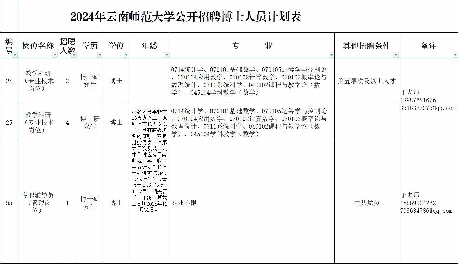 2024年学院计划招聘教学科研(专业技术岗位)6人、专职辅导员(管理岗位)1人,期待您的加盟,详情请查看云南师范大学招聘网站:https://rsc.ynnu.edu.cn/info/1037/1374.htm。
