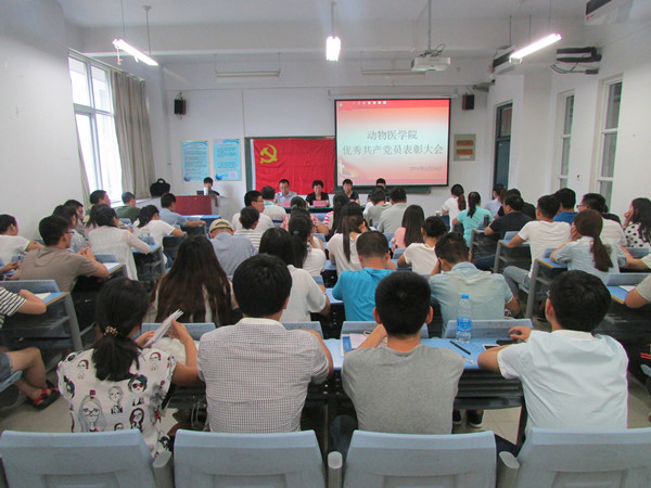 2016年6月24日下午3:30,动物医学院在生工组团A408教室隆重举行2016年“七·一”表彰大会暨新、老党员入党宣誓仪式。院领导班子成员出席大会,全院70余名师生党员参加大会。大会由张瑞春同志主持。