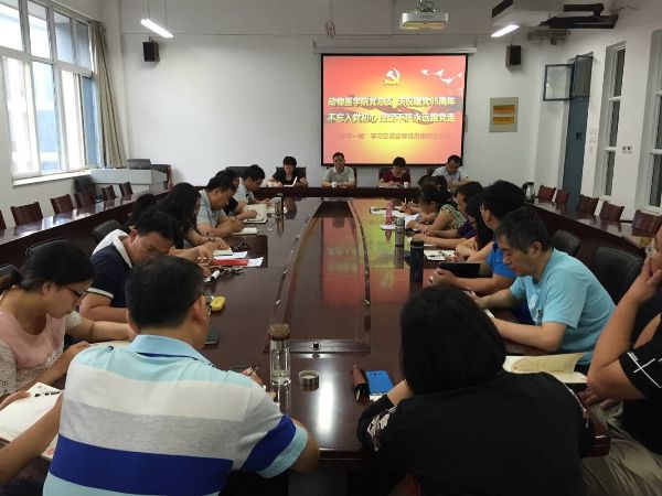 2016年7月1日上午8:30,动物医学院在生工组团C401会议室召开党员大会,热烈庆祝中国共产党成立95周年,并举行以“不忘入党初心,坚定不移永远跟党走”为主题的学习交流会和党员组织生活会。校党委书记王保国出席活动并为教师党员讲专题党课。会议由院党总支书记王春明主持。