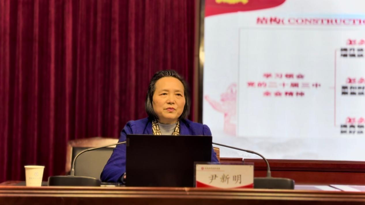 尹新明指出,党的二十届三中全会是在以中国式现代化全面推进强国建设、民族复兴伟业的关键时期召开的一次十分重要的会议。目前,我校正处于建设高水平大学的关键阶段,改革是学校事业进一步发展的迫切要求,是学校事业在更高层面发展的任务需要,是学校事业开创全新局面的必由之路。她强调,学校将在全会精神的指引下,聚焦立德树人根本任务,创新人才培养模式,建设高质量教育体系、健全师德师风建设长效机制,向深化改革要动力,向创新创造要活力,向开放办学要潜力,坚定走好内涵发展之路、改革创新之路、开放合作之路。她寄语师生,全体师生要站在服务国家战略、扛稳国家粮食安全、服务我省“十大战略”的高度,争当贯彻落实党中央决策部署的执行者、行动派、实干家,以钉钉子精神稳扎稳打向前行,把进一步全面深化改革的战略部署转化为推进干事创业强大动力。同学们要当好改革发展的生力军,为推动中国式现代化建设贡献青年力量。