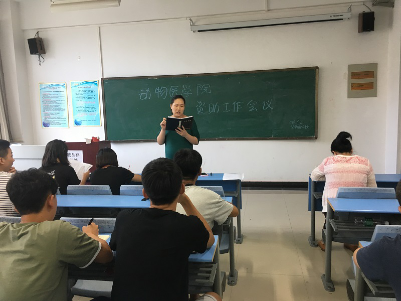 为保证2018年动物医学院资助工作顺利开展,同时落实资助育人“两节课”制度,我院于9月6日在生工楼A408召开新学期资助工作安排暨政策宣讲会,我院全体在校班级班长以及2018级新生助理班主任参加了本次会议,团总支辅导员张丽、樊明明为本次宣讲会主讲。