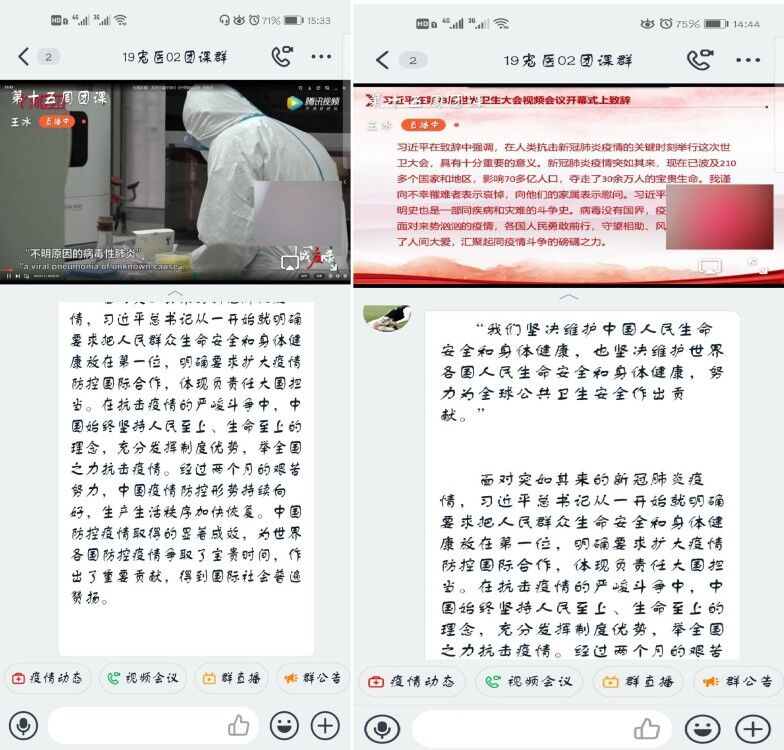 2020年5月21日,下午2:30至4:00,我院组织19级各班在钉钉团课群中开展以“携手抗疫显大国担当,勇担使命展青春风采”为主题的团课学习活动。