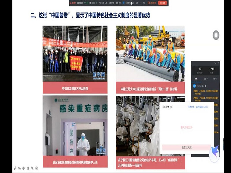 团课学习活动中主持人讲述了校团委深入贯彻落实习近平总书记重要指示,团结带领全校,迅速行动、众志成城、防汛抗疫,扎实开展防汛救灾、帮扶救助和卫生防疫工作,全力保障师生的生命财产安全的优秀事迹,并号召同学们要提高思想认识,扛牢政治责任。同学们表示,要坚定贯彻习近平总书记重要指示和党中央、国务院决策部署,充分认识到疫情防控形势的复杂性、严峻性和重要性,坚决执行学校疫情防控工作要求,主动投身疫情防控斗争第一线,主动带头坚守岗位,发扬无私无畏精神,顾全大局,把灾难当教材,敢于担当、主动作为,为打赢抗疫抗洪的双线战役做好充分准备。