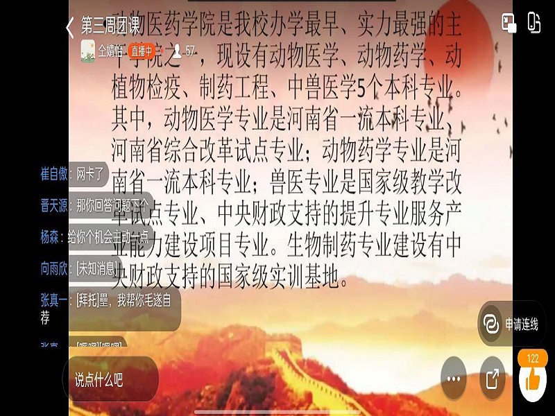 本次团课学习使同学们都深刻了解了牧院是培养人才的摇篮,流荡着社会道德的原动力,屹立着精神实质的旗子,记录着无上光荣。同学们都诚心祝愿着河南牧业经济学院发展越来越好!(文/图 关兵峰)