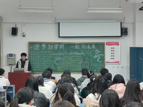 为响应团委号召,同时弘扬伟大的冬奥精神,强化同学们的家国情怀意识。2022年3月3号下午两点半到四点,我院组织21级全体学生在团课教室开展团课学习活动。本次团课的主题是“逐梦新学期 一起向未来”。