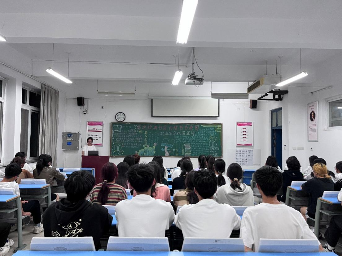 为认真落实校图书馆“新时代校园阅读季”阅读推广活动,积极响应共青团中央实施“共青团促进大学生就业行动”工作,用科学的方法引领同学们学思践悟,知行合一,树立理性平实的择业观,就业观,2023年11月2日,银河集团186net组织2023级青年团员开展以“书香氤氲溢校园,就业指导引未来”为主题的团课活动。