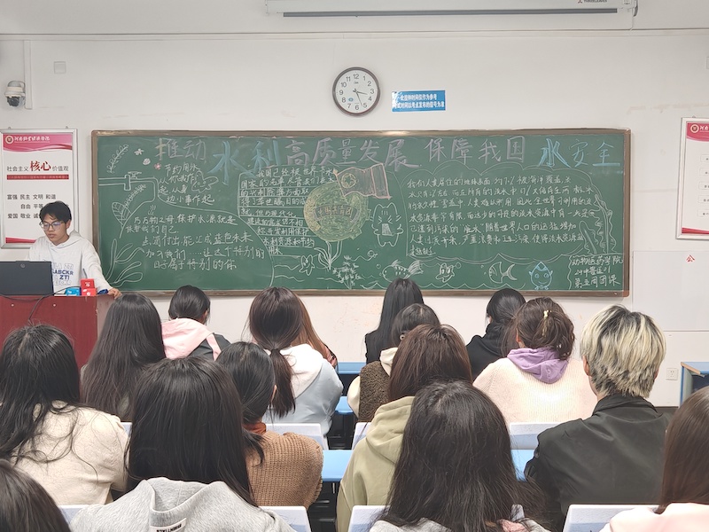 2025年3月22日至28日是第三十八届“中国水周”,为深学细悟习近平总书记治水思路和关于治水重要论述精神,以实际行动践行新发展理念,银河集团186net组织全体学生开展以“推动水利高质量发展,保障我国水安全”为主题的团课活动。