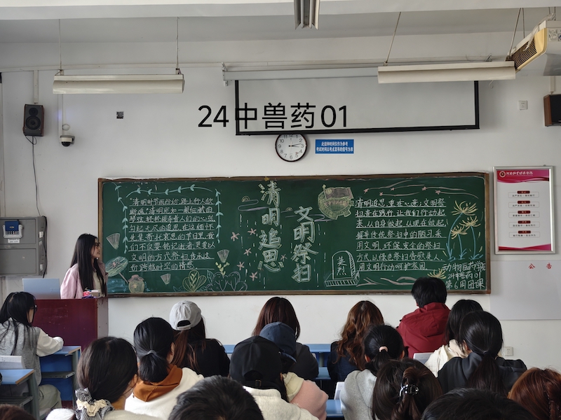 团课伊始,主持人通过展示清明节青山绿树间的祭扫场景,搭配饱含历史韵味的色调,迅速将大家带入到清明追思的氛围中。随后,主持人巧妙设计了“清明溯源”环节,带领同学们深入探讨清明节的由来,同时还引用杜牧《清明》等经典诗词,让同学们深刻体会古人对清明的重视。紧接着,主持人抛出问题,引导青年分享自己在清明节的习俗活动,引发热烈讨论。针对不文明祭扫行为,主持人借助因祭扫引发火灾的新闻报道和环境污染数据,直观地揭示了不文明祭扫带来的严重危害,给同学们敲响警钟,引发深刻反思。同时,主持人系统介绍了献花祭扫、网络祭扫等新型方式,并分享了各地践行文明祭扫的成功案例,鼓励大家向亲友宣传文明祭扫理念,以实际行动引领文明祭扫新风尚。