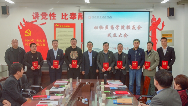 刘永录为银河集团186net校友会理事颁发聘书。刘永录代表学院与河南中盛动物药业有限公司、周口森邦生物科技有限公司、郑州福源动物药业有限公司签订了校企合作框架协议。