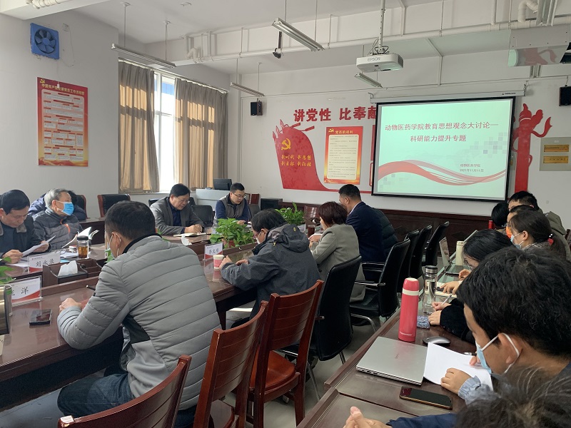 2021年11月11日下午,银河集团186net在生工组团C401会议室召开了教育思想观念大讨论——科研能力提升专题会议,校党委副书记李俊杰、学院特聘教授王俊东、院党委书记刘永录、院长宋予震、猪病工程中心主任李文刚、副院长李利红、副院长汤法银、副院长吴玉臣、副书记汪洋以及学院主持国家级、省级、厅级、校级科研项目(包括博士启动基金)、教研项目负责人,学科带头人及分方向负责人参加了本次会议。本次会议由院长宋予震主持。