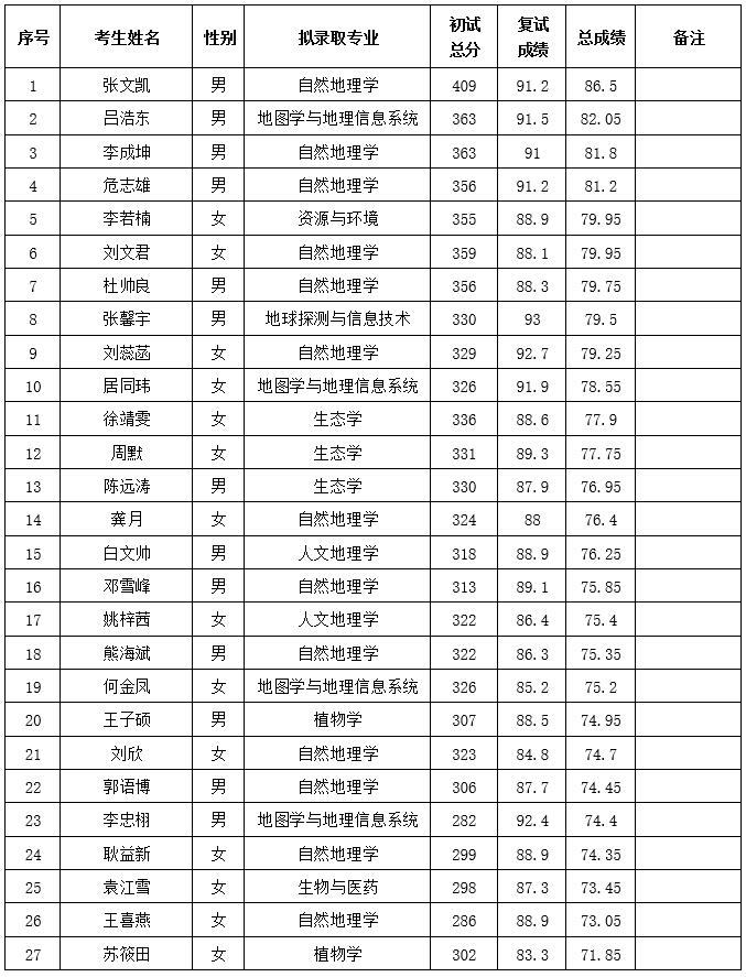经初试、复试等环节考核考查,中国科学院新疆生态与地理研究所确定拟录取张文凯等34人为我所2023年硕士研究生,具体名单如下: