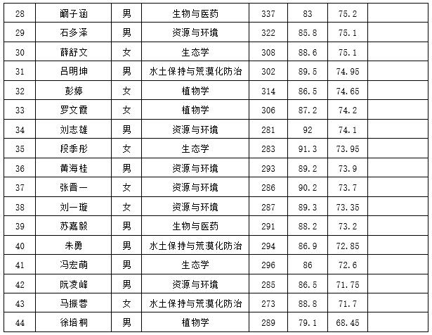 经初试、复试等环节考核考查,中国科学院新疆生态与地理研究所确定拟录取刘潇等44人为我所2023年硕士研究生,具体名单如下: