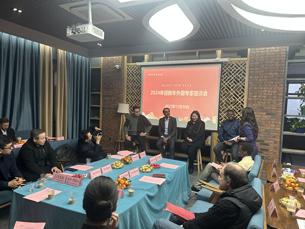 座谈会以“迎接新的可能”为主题,与会人员集体观看了《新疆是个好地方》宣传片,来自埃及、巴基斯坦、伊朗、乌兹别克斯坦、卢旺达等国家的9位外国专家倾情分享交流了各国迎新年文化、在疆生活经历、科研工作中的挑战与应对等;自治区科技厅(外国专家局)外国专家服务处、乌鲁木齐公安局出入境管理支队、高新区国保大队、科北社区警务室等主管部门解读了自治区最新出台的外国专家工作许可、签证、居留许可等便利政策,分享了外国专家科研项目、天山奖等申报信息。会场内气氛热烈、暖意融融,大家在轻松愉悦的氛围中共迎2024年新年到来。