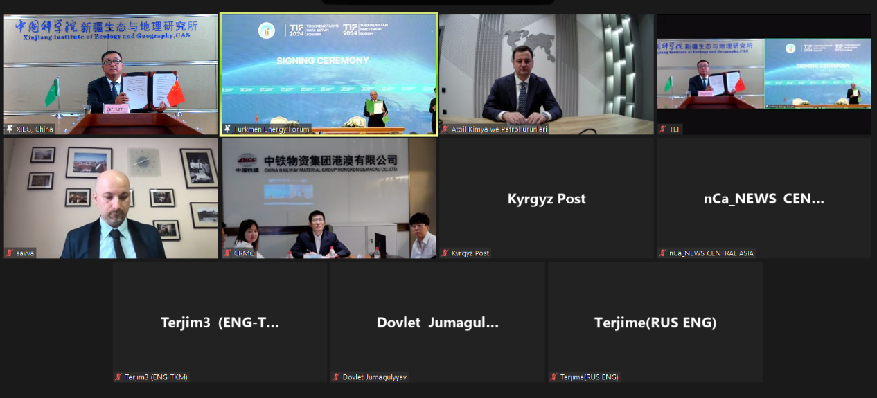 9月11日,在土库曼斯坦2024投资论坛期间,中国科学院新疆生态与地理研究所张元明所长与土库曼斯坦环境保护部Charygeldy Babanyyazov部长共同签署了“新疆生态与地理研究所与土库曼斯坦环境保护部国家沙漠、植物与动物研究所合作协议”,该协议以视频会议的方式签署。未来双方将加强在环境保护、生态治理、生物多样性监测与保育等领域的科学研究、知识共享和人才培养。