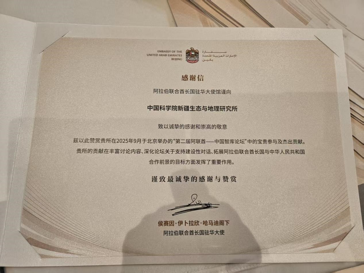 9月23日,由阿联酋驻华大使馆主办的第二届阿联酋—中国智库论坛在北京开幕。阿中双方多位专家出席,并就各类议题发表演讲。中国科学院新疆生态与地理研究所雷加强研究员及团队应邀参会,并与阿中双方高级别代表及专家学者进行深入交流。