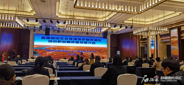 新疆和田生态环境保护暨荒漠化综合防治高质量发展大会活动现场。石榴云/新疆日报记者 谢慧变摄