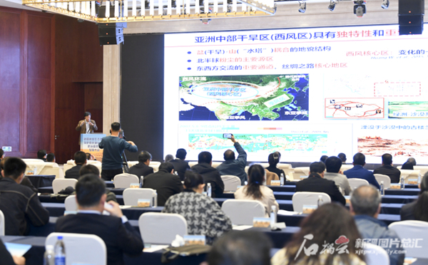 活动现场,中国科学院院士、中国科学院青藏高原研究所所长陈发虎同志作主旨报告。石榴云/新疆日报记者 汤永摄