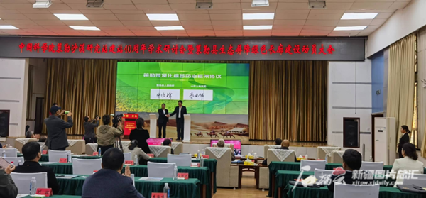 会议当日,策勒县人民政府与策勒沙漠研究站签订荒漠化综合防治框架协议。双方将在荒漠化防治、脆弱生态系统修复、水资源、生态沙产业等方面加强合作。
