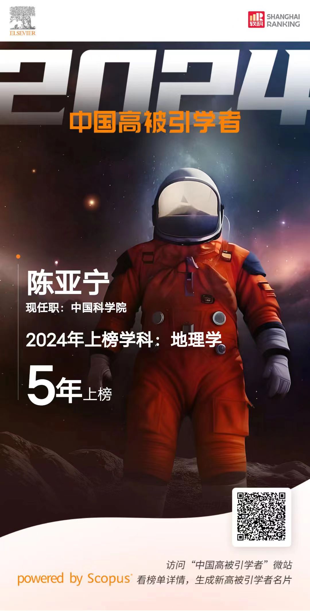 日前,爱思唯尔(Elsevier)正式发布2024“中国高被引学者”(Highly Cited Chinese Researchers) 榜单,来自547所高校、企业及科研机构的共计6388人上榜,覆盖了10个教育部学科领域中的83门一级学科。其中,新疆8名科学家荣登榜单。